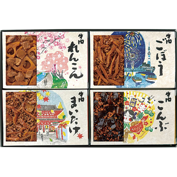 牛肉ごぼう・牛肉れんこん・牛肉まいたけ・牛肉こんぶ各55g×各1