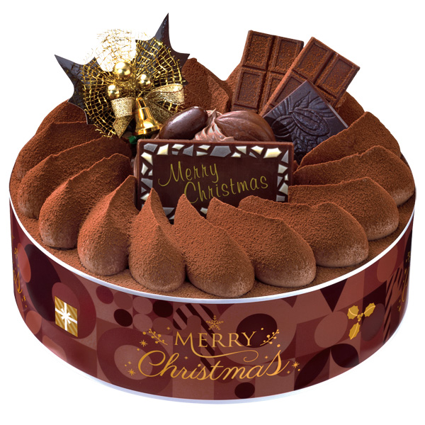 6号<直径約18cm> 一部に卵・乳成分・小麦・アーモンド・大豆を含む 消費期限:お渡し日含め2日 チョコチップとチョコクリームをサンドし、チョコをトッピングしたチョコづくしのクリスマスケーキです。