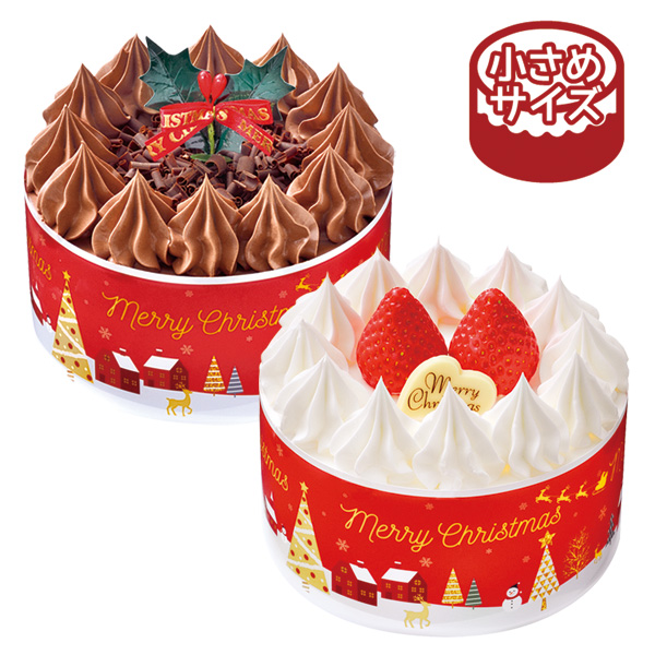 <直径約11cm×2個> ※苺2個(別添) 一部に卵・乳成分・小麦・大豆・もも・ゼラチンを含む 消費期限:お渡し日含め2日 苺のケーキとチョコケーキの2つの味が楽しめるペアケーキです。