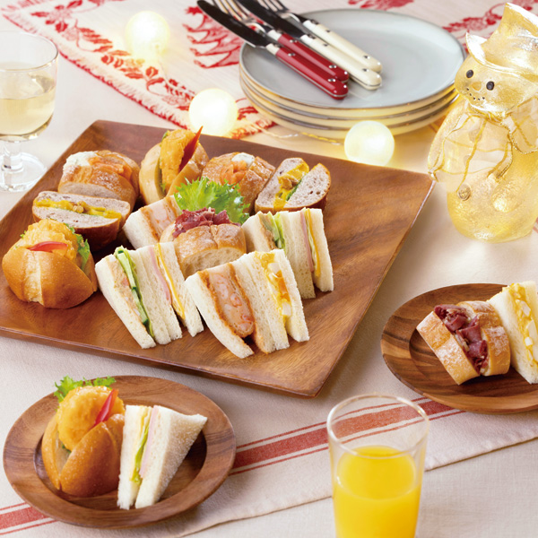 4種類のパンに彩り豊かな具材をあわせた、クリスマスの食卓を華やかにするサンドイッチプレートです。