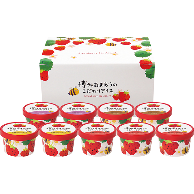 あまおうソース&バニラ58ml×3、あまおう&ショコラ76ml×2、あまおうクリームチーズ・あまおうシャーベット各78ml×2