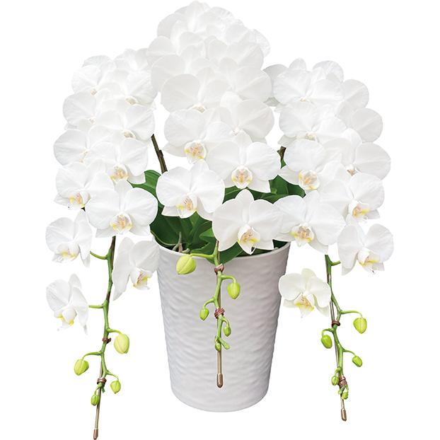 白色の中輪胡蝶蘭です。花輪が小さめなところも可愛らしさがあり、お花の優しさと温かさが見ている人の心を癒してくれます。