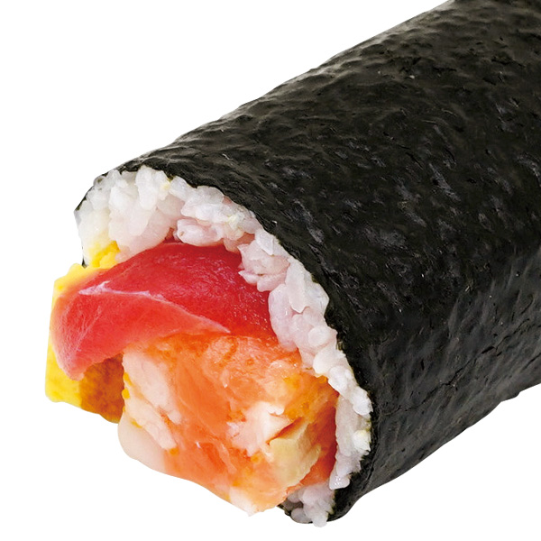 ・まぐろ・いか・サーモン・えび・数の子・たまご ※1本(直径約5cm×長さ約18cm) ※一部に卵・乳成分・小麦・えび・かに・いか・さけ・大豆を含む 冷蔵、消費期限:お渡し日当日 ※ご予約商品は、全て午前11時からのお渡しとなっております。