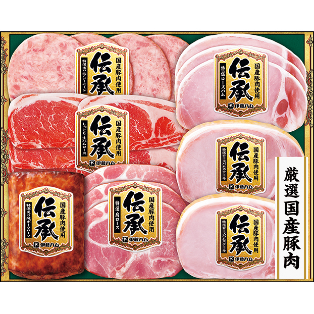 特選炙り焼ポークローフ160g、特選肩ロース66g、しっとり生ハムロース34g、特選ボロニアソーセージ51g、特選ロースハム45g、特選ロースハムステーキ70g×2