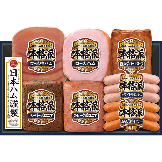 ロースハム160g、スモークボロニア105g、ペッパーボロニア105g、直火焼ミートローフ128g、ロース生ハム27g、特撰あらびきウインナー66g、特撰ホワイトウインナー66g