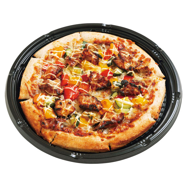 一口サイズの照焼きチキンがゴロっとのった彩り豊かなピザです。
